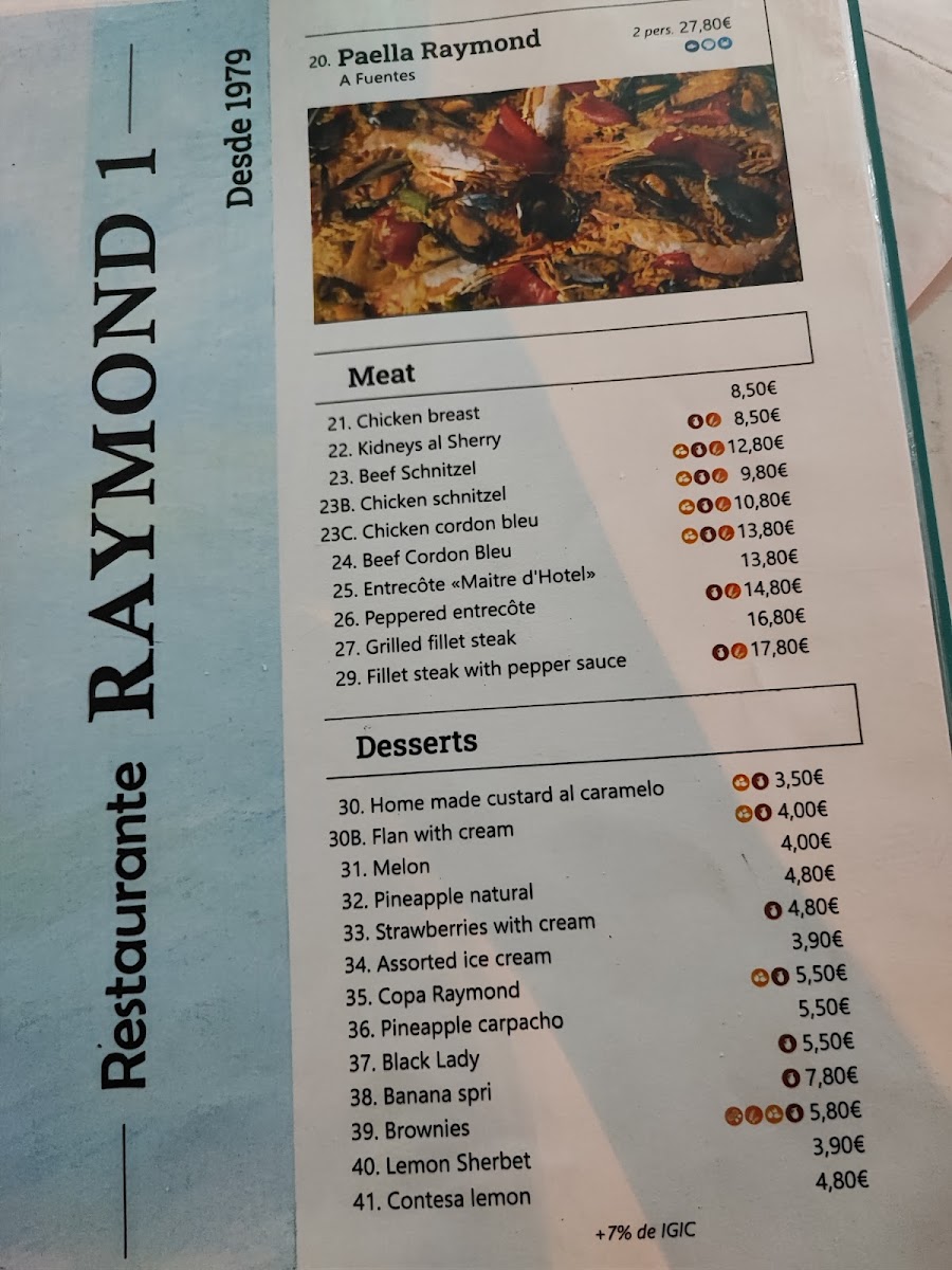 The ambiance is warm and welcoming, perfect for both locals and visitors alike. Patrons rave about the attentive service and the genuine approach of the staff, making every guest feel at home. Whether you’re sharing a generous plate of paella at €25.90 for two or indulging in a refreshing lemon sorbet for dessert, everything at Restaurante Raymond 1 is designed to delight. With a menu catered to a variety of tastes, you're sure to find the perfect dish to enjoy in good company.